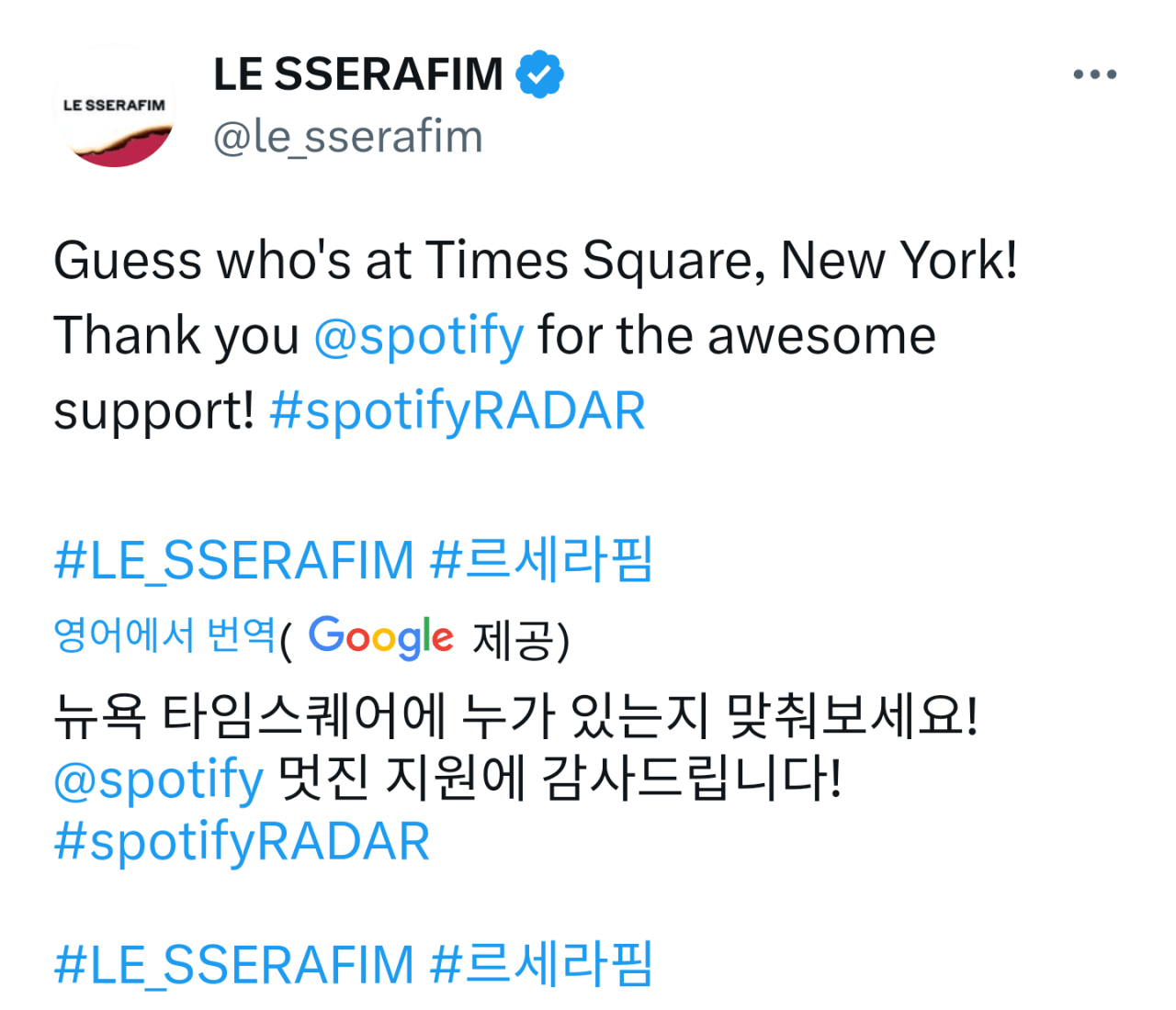 230824 르세라핌 공트 #스포티파이#타임스퀘어 2 루라릭 0 10493 0 0 2023.08.24 22:24 https://twitter.com/le_sserafim/status/1694699778578563524?s=2 0 0